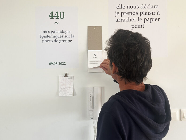 « Qu’est-ce que ça fait d’habiter dans un texte ? », s’interroge le poète et « qu’est-ce que ça fait pour le visiteur de lire un texte avec son corps, puisque il doit monter les escaliers, lever la tête, la baisser par moments », c’est l’étape en cours de cette création. Lors de performances, certaines zones de la maison seront « ouvertes » : « casser le placoplatre pour lire le texte écrit sur les murs d’origine. »