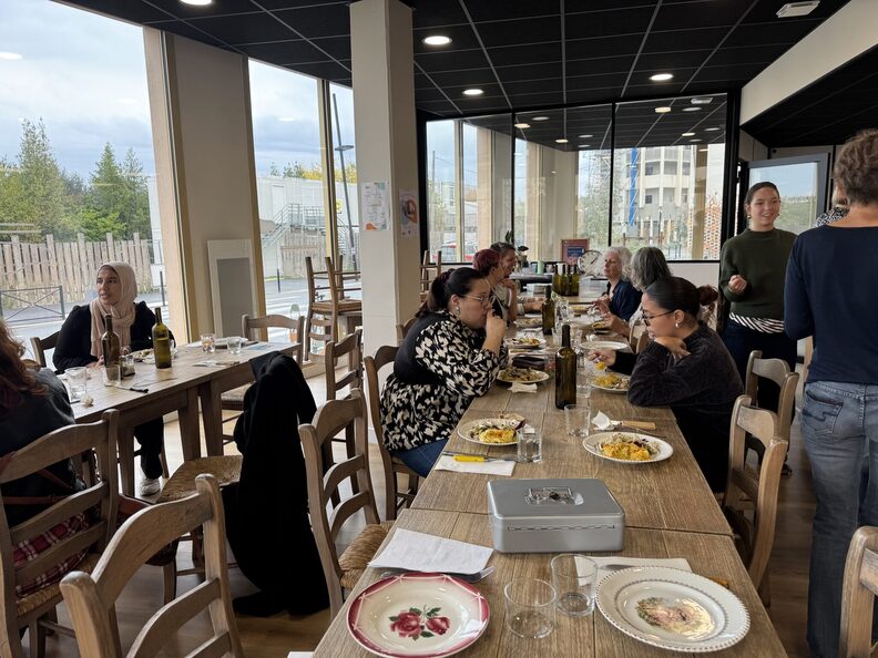 Pour Leïla, c’était une première. Membre d’une association de soutien aux familles à Bordeaux‑Bastide, elle propose notamment une épicerie sociale et solidaire et de nombreuses actions de proximité en faveur du lien social. Elle a rencontré Bertrand lors d’un événement du quartier, lui donnant envie de découvrir les ateliers de cuisine des Petites Cantines. Très impliquée dans la séance, elle confie :