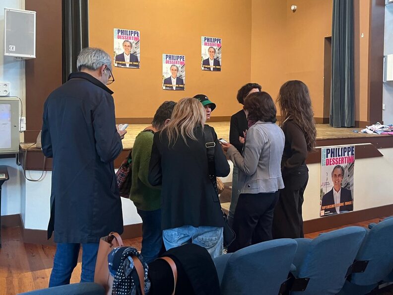 À la Maison cantonale, dans le quartier de la Bastide à Bordeaux, Philippe Dessertine devait tenir le deuxième meeting de sa campagne d’entre les deux tours. Ses partisans l’attendent avec la crainte d’une annonce d’un retrait. La rumeur a déjà fait le tour et la déception est sur les visages. Aucun ne souhaite s’exprimer avant l’allocution de l’ex candidat, qui n’a pas présenté de liste pour le second tour.